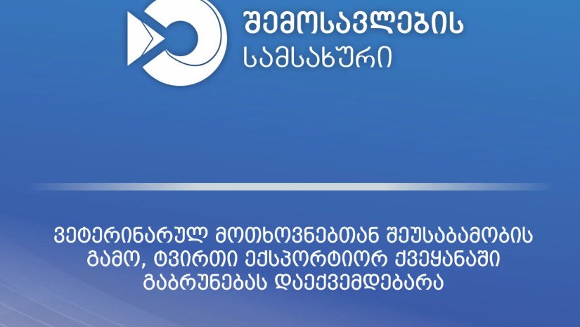 კანონმდებლობის შესაბამისად, ტვირთი ექსპორტიორ ქვეყანაში გაბრუნებას დაექვემდებარა.