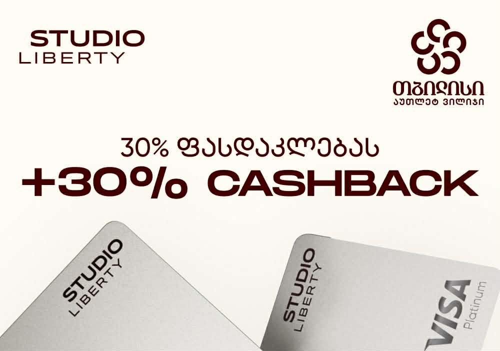 28–29 ნოემბერს, Tbilisi Outlet Village განსაკუთრებულად ელოდება სტუდიო ლიბერთის მომხმარებლებს. Tbilisi Outlet Village-ის უკვე არსებულ მინიმუმ 30%-იან ფასდაკლებებს სტუდიო ლიბერთის Visa Platinum ბარათით გადახდისას მომენტალური 30% ქეშბექი დაემატება. 30 + 30 გაერთიანებული შეთავაზება ერთ სივრცეში - სტუდიო ლიბერთის მომხმარებლებს ახალ შოპინგ გამოცდილებას პირდება. ეს ნიშნავს, რომ აღნიშნულ ორ დღეს მომხმარებლებს შეუძლიათ ისარგებლონ რეალური, ორმაგი უპირატესობით, რომელიც ვრცელდება როგორც ახალ, ასევე უკვე ფასდაკლებულ კოლექციებზე.