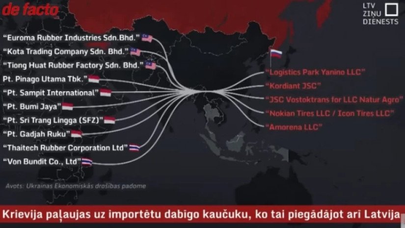 "როგორც უკრაინის ეკონომიკური უსაფრთხოების საბჭომ გამოავლინა, ევროკავშირიდან რუსეთში ნატურალური კაუჩუკის მიწოდების ერთ-ერთი მთავარი მარშრუტი პირდაპირ ლატვიაზე გადიოდა. რუსეთში ეს კაუჩუკი ასევე გამოიყენება სამხედრო თვითმფრინავების საბურავების წარმოებაში", - ნათქვამია De facto-ს სიუჟეტში.