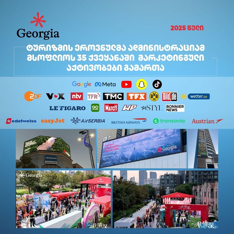საქართველოს ტურისტულ პოტენციალს გაეცნენ მადრიდის, ბერლინის, ლონდონის, პარიზის, შანხაის, დუბაის და მსოფლიოს სხვა მასშტაბურ ტურისტულ გამოფენებზე. 2026 წელს კი საქრთველო ITB China-ზე პარტნიორი ქვეყნის სტატუსით წარდგება.