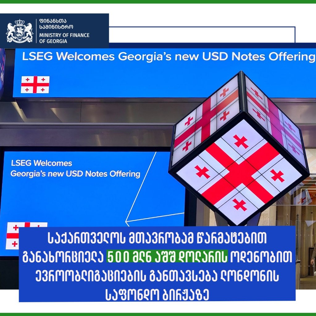 საქართველოს მთავრობამ წარმატებით განახორციელა 500 მილიონი აშშ დოლარის ოდენობის ევროობლიგაციების გამოშვება ლონდონის საფონდო ბირჟაზე - კუპონის განაკვეთი დაფიქსირდა 5.125% ოდენობით. მიმდინარე გამოშვებისას დაფიქსირებული კუპონი, ევროობლიგაციების ბაზრისთვის ყველაზე დაბალი განაკვეთია საქართველოს მსგავსი და ერთი საფეხურით მაღალი საკრედიტო რეიტინგის მქონე სუვერენული ევროობლიგაციებისთვის, ბოლო 4 წელიწადში.