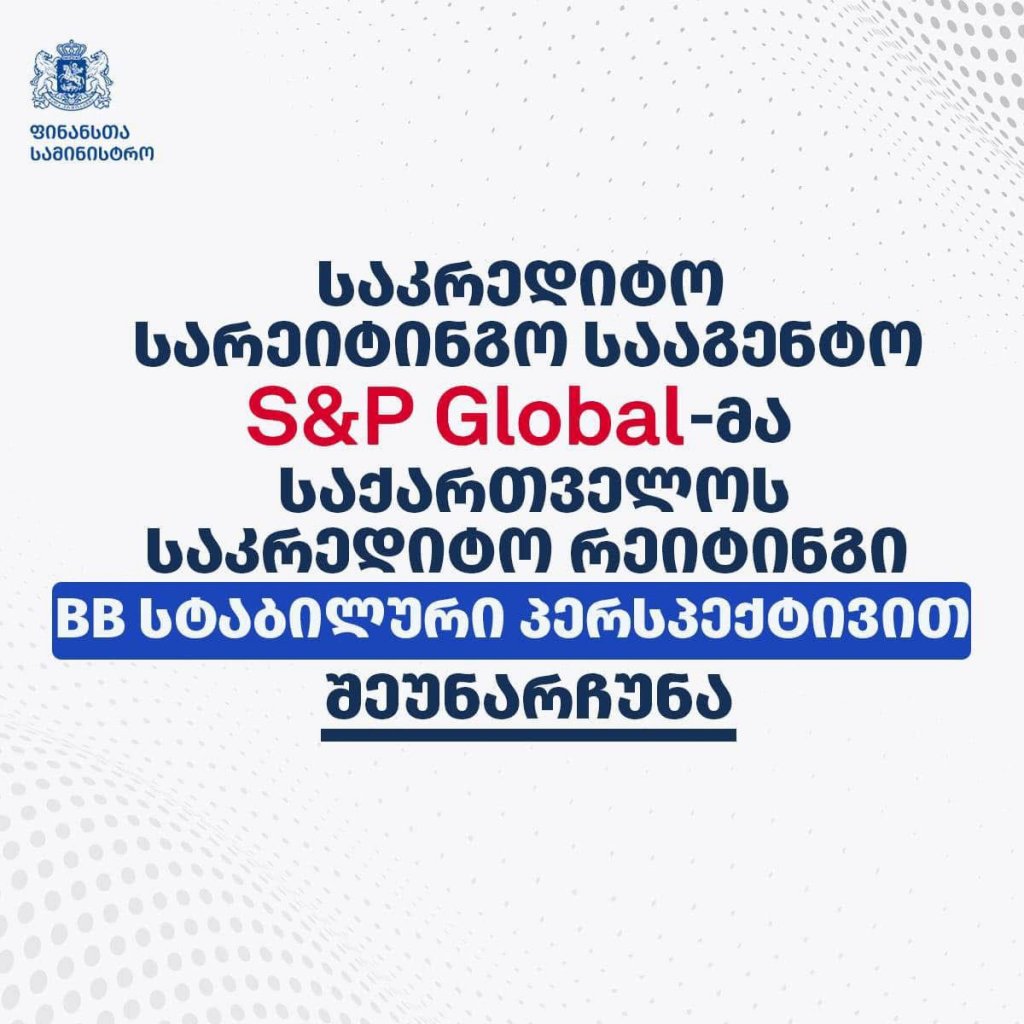 2026 წლის 6 თებერვალს, საკრედიტო სააგენტო S&P Global-მა საქართველოს სუვერენული რეიტინგი შეაფასა და უცვლელად, BB დონეზე დატოვა, სტაბილური პერსპექტივით.