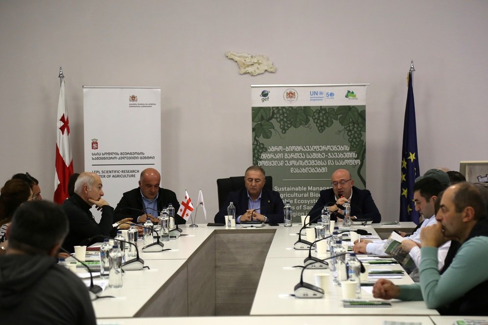 შეხვედრა ასპინძის მუნიციპალიტეტში, კავკასიის რეგიონული გარემოსდაცვითი ცენტრის მიერ დაფინანსებული პროექტის „აგრობიომრავალფეროვნების მდგრადი მართვა სამცხე-ჯავახეთის რეგიონის მოწყვლად ეკოსისტემებსა და სასოფლო დასახლებებში“ ფარგლებში გაიმართა. პროექტის მეცნიერულ მხარდაჭერას სოფლის მეურნეობის სამეცნიერო-კვლევითი ცენტრი ახორციელებს.