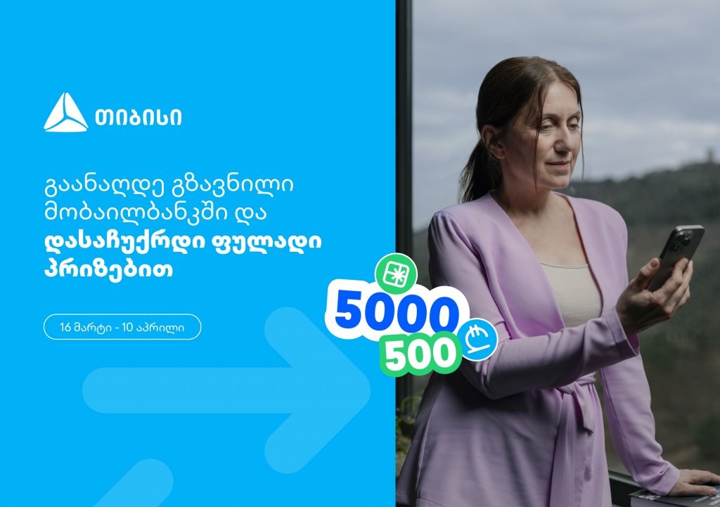 16 მარტიდან 10 აპრილის ჩათვლით, გაანაღდე ფულადი გზავნილი მობაილბანკში და მიიღე შესაძლებლობა, ერთგულ ყულაბაში დასაჩუქრდე 500 ლარით ან სუპერ პრიზით- 5 000 ლარით.