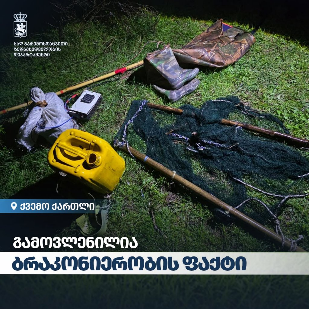 გარემოს დაცვისა და სოფლის მეურნეობის სამინისტროს გარემოსდაცვითი ზედამხედველობის დეპარტამენტის ქვემო ქართლის რეგიონული სამმართველოს თანამშრომლებმა მდინარე ხრამზე უკანონო თევზჭერის ფაქტი გამოავლინეს.